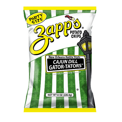 Cajun Dill Gator‑Tators mix zesty dill pickle brightness with a Cajun kick, offering a uniquely tangy and spicy kettle crunch that stands out in the Zapp’s lineup.